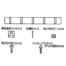 専用金具フック、石膏釘(ステンレス) ・ 取り付けピース(ABS樹脂) ・取り付け用ビス(鉄(ユニクロメッキ)) ・アンカープラグ(ナイロン)