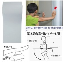 開き扉の開閉可動部のスキマをカバーし、指挟みの危険を防止します